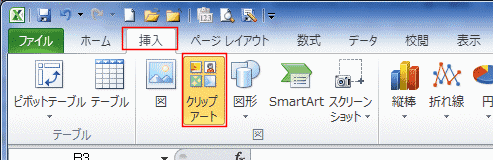 - Excel2010の[挿入]タブの[クリップアート]をクリックします。