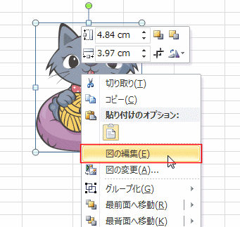 - または、クリップアートを右クリックして、[図の編集]を実行します。