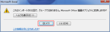 - 「これはインポートされた図で、グループではありません。Microsoft Office描画オブジェクトに変換しますか?」とメッセージが表示されます。