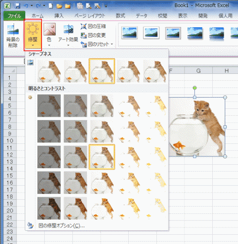 よねさんのExcelとWordの使い方|エクセル2010基本講座:目次|図(写真や画像)や図形の操作|クリップアートを編集したい