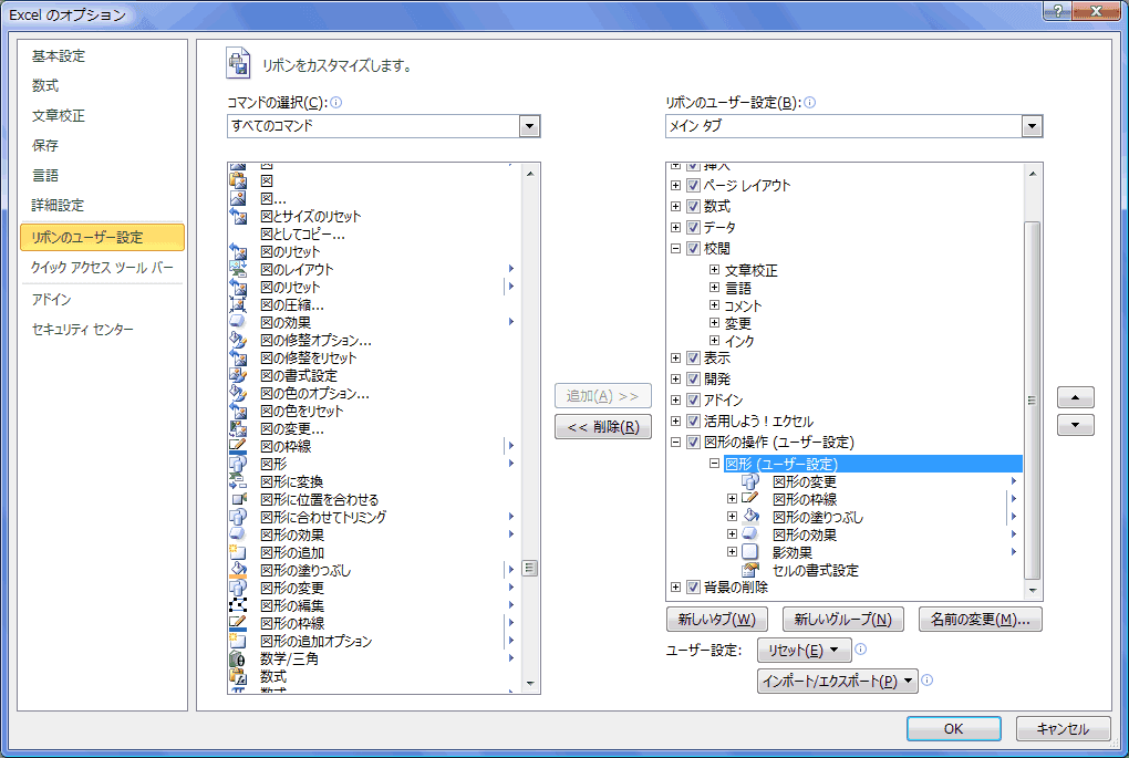 | コメントの操作について | リボンのユーザー設定でコマンドを登録する | |
