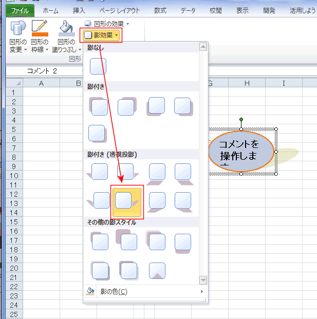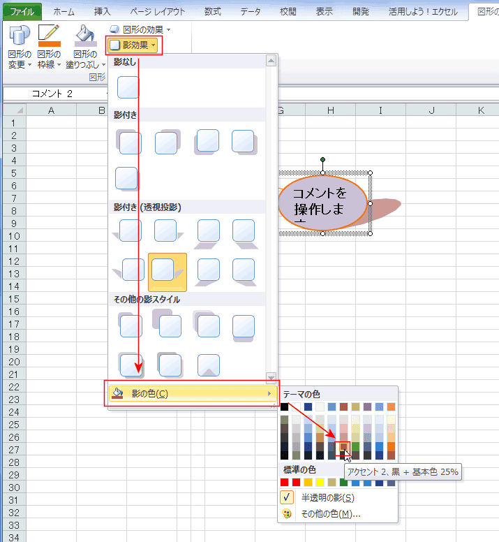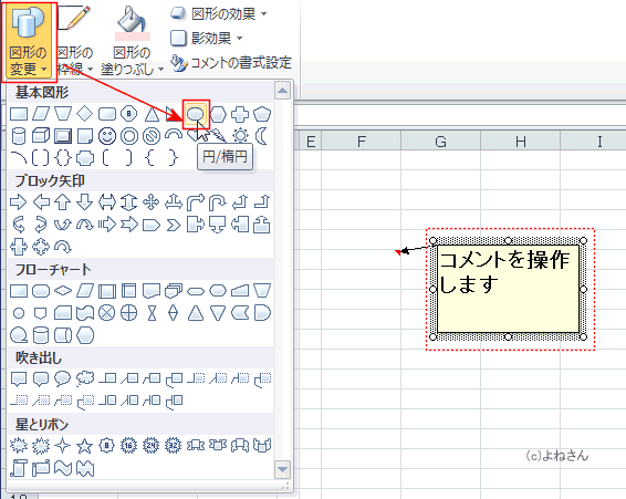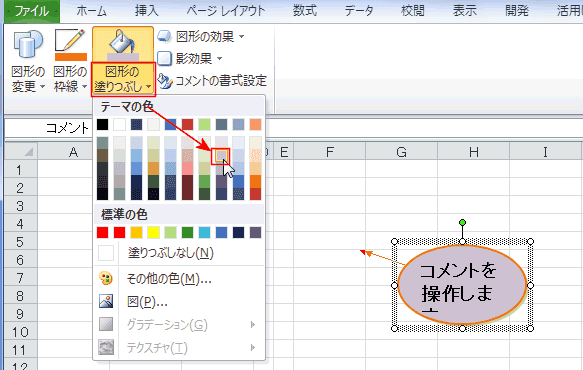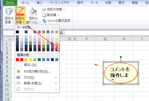 | コメントの図形を変更する | コメントの図形の枠線、塗りつぶしの色を変更する | |
