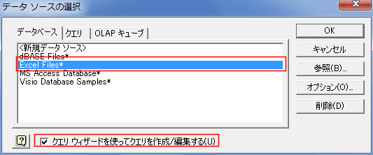 「クエリ ウィザードを使ってクエリを作成/編集する」にチェックが入っています。