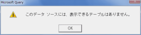 - 「このデータ ソースには、表示できるテーブルはありません。」と表示されました。