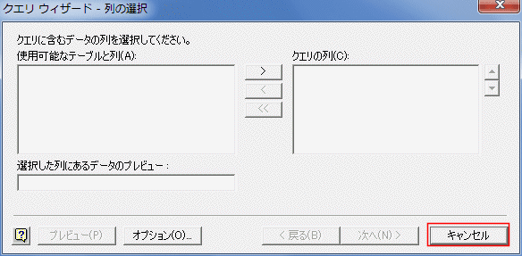 - クエリ ウィザード 列の選択が表示されましたが、空欄になっています。
