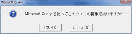 - 「Microsoft Queryを使ってこのクエリの編集を続けますか?」と表示されました。