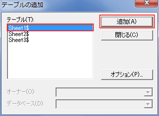 ここでは「Sheet1」を選択して[追加]ボタンをクリックしました。