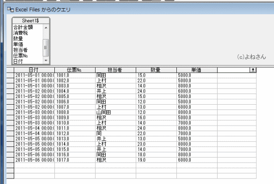 Microsoft Queryウィザードを使ってExcelのデーターを取り込む