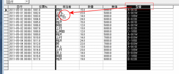- 列の並びは列を選択したのち、列見出し部分をドラッグ&ドロップして移動できます。