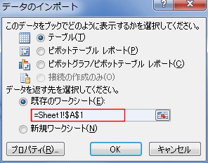 データを返す先を指定します。[OK]ボタンをクリックします。
