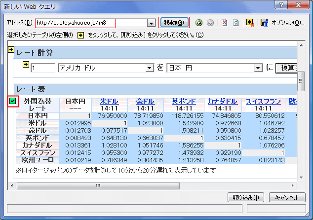 Webクエリ(インターネット上のデータを取り込む)