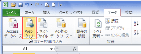 - [データ]タブの[外部データの取り込み]グループにある[Webクエリ]を実行します。