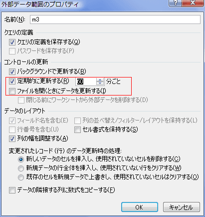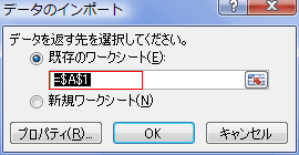 - [プロパティ]をクリックすると、「外部データ範囲のプロパティ」ダイアログが開きます。