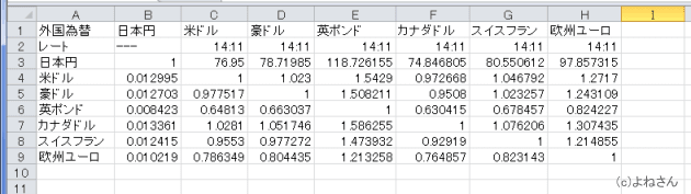 - Yahoo!ファイナンスの為替レートの表を例にして、手順を書きます。