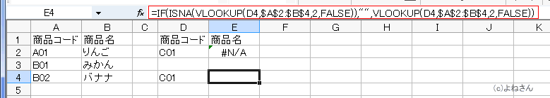 | ISNA | 対象がエラー値 #N/A (使用する値がない) を参照するとき TRUE を返します。 |