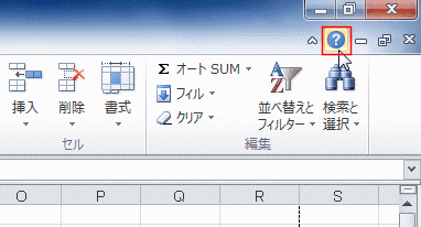 - Excelのウィンドウ右上の[ヘルプ]ボタンをクリックしします。