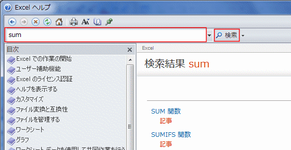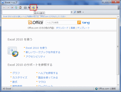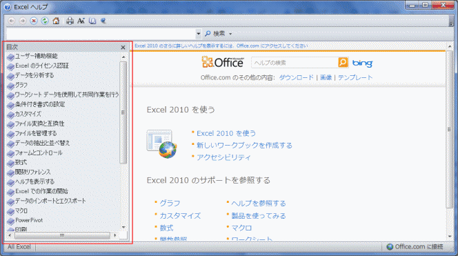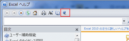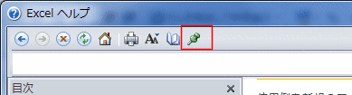 - Excelヘルプの[目次の表示]ボタンをクリックします。