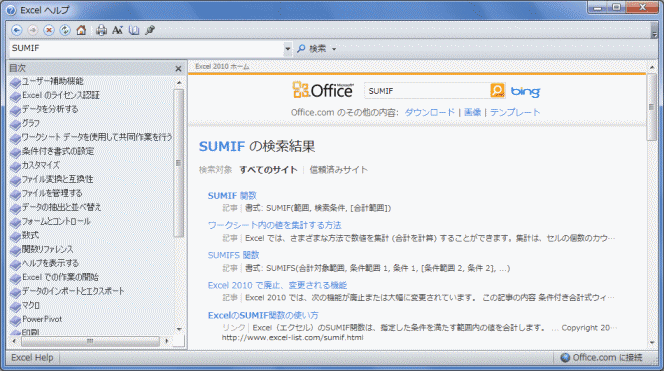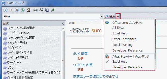 - 「このコンピューター上のコンテンツ」のExcel Helpの結果例