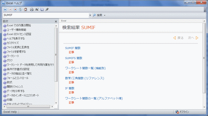- 「このコンピューター上のコンテンツ」がオフライン(PCにインストールされているHelpを利用する)