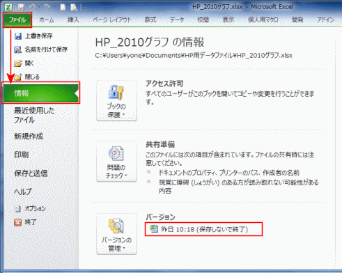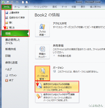 よねさんのExcelとWordの使い方|エクセル2010基本講座:目次|Excel(エクセル)のバックステージ ビューの使い方|バージョンの管理