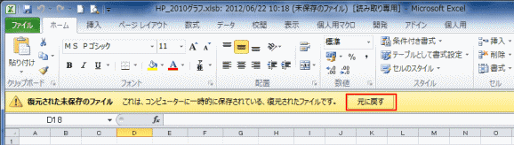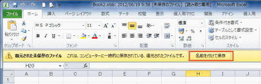- 保存されていないファイル(ブック) を回復することができます。