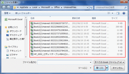 - 回復可能なファイルが不要である時は、これらのファイル(ブック)を削除できます。