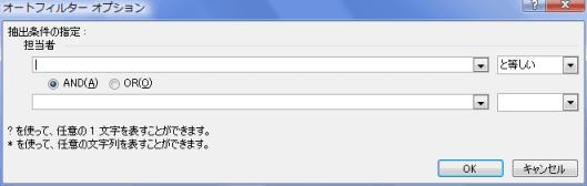- 表示されるダイアログボックスは「オートフィルター オプション」となっています。