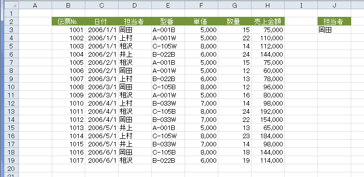 詳細設定を使った別シートへのデータ抽出 topへ