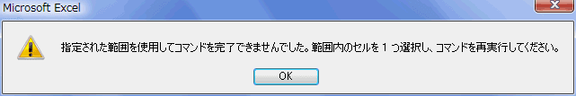 - (注1) この時複数のセルを選択した状態ですと警告メッセージが表示されます。