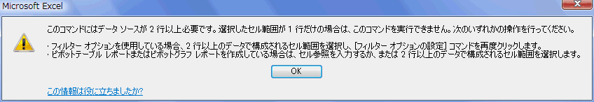 - (注2) また下記の「列見出しを含むリスト・・・」の警告が表示されることもあります。
