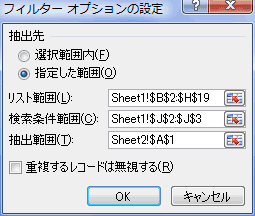 抽出範囲 : Sheet2!$A$1 とします。