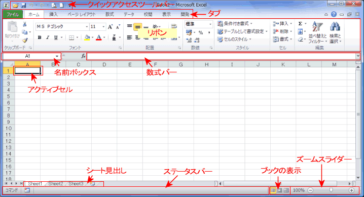 よねさんのExcelとWordの使い方|エクセル2010基本講座:目次|画面表示|Excel2010の画面構成