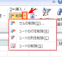 ただし、シートの削除は[▼]をクリックして表示されるサブメニューの[シートの削除]から実行します。