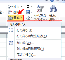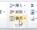 - 【例2】[ホーム]タブの[セル]グループにある[書式]コマンド