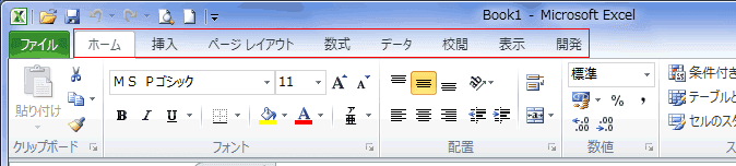 - エクセル2010と2007とはほとんど同じですが、エクセル2010では[ファイル]タブが復活しています。