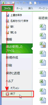- Excel2007の[Office]ボタンがExcel2010では[ファイル]タブに変わりました。