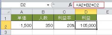 利益の計算は =A2*B2*C2 としています。