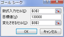 - 「ゴールシーク」ダイアログボックスで下図のように設定します。