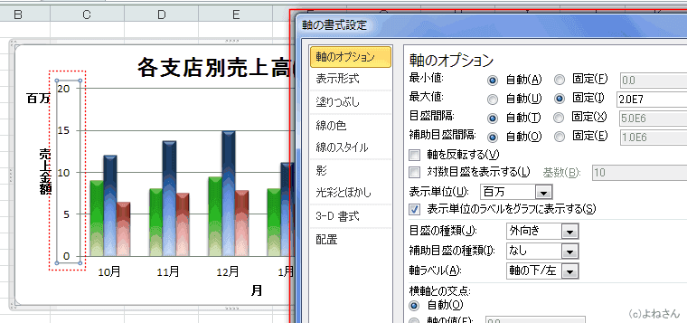 下図は縦軸の部分をダブルクリックしたときのものです。