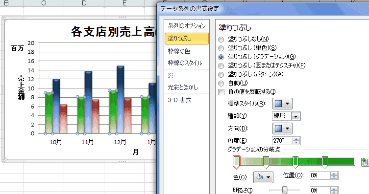 グラフ要素の系列をダブルクリックします。データ系列の書式設定ダイアログが表示されます。