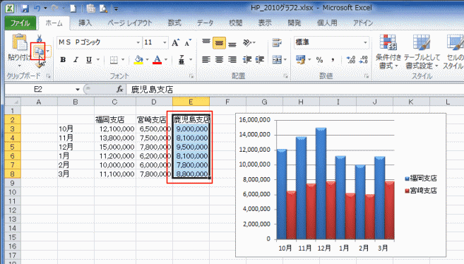 データ系列「鹿児島支店」が追加されました。