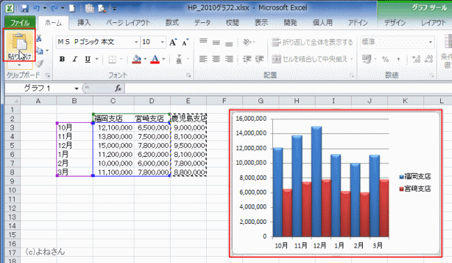 グラフエリアを選択して、[貼り付け]を実行します。