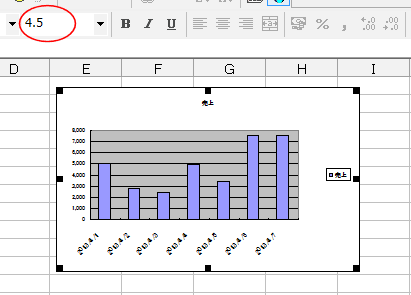 Excel2003までのグラフのサイズを大きくすると、フォントサイズも大きくなっていました。