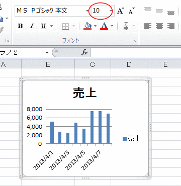 Excel2010ではグラフのサイズを大きくしても、フォントのサイズは変わりません。