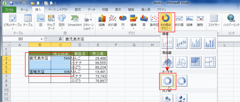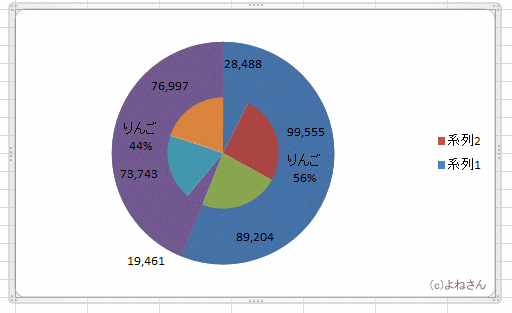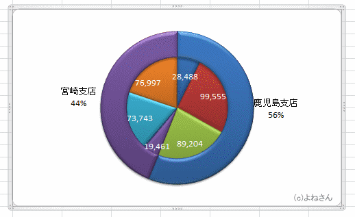 よねさんのExcelとWordの使い方|エクセル2010基本講座:目次|グラフの使い方|ドーナツと円の複合グラフを作成する