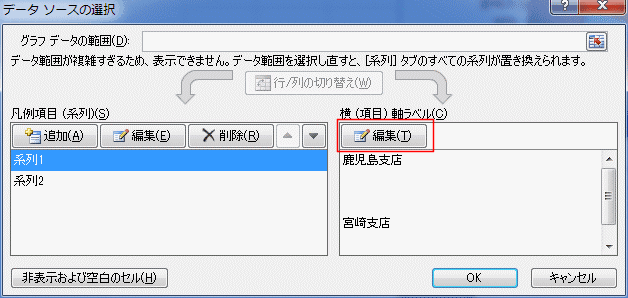- グラフツールの[デザイン]タブを選択し、[データの選択]を実行します。