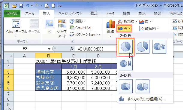 よねさんのExcelとWordの使い方|エクセル2010基本講座:目次|グラフの使い方|円グラフの作成