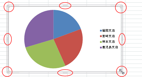 - グラフを選択すると表示される外枠の8か所にハンドルがあります。