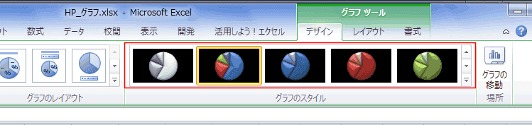 - [デザイン]タブの「グラフのスタイル」から選択することができます。