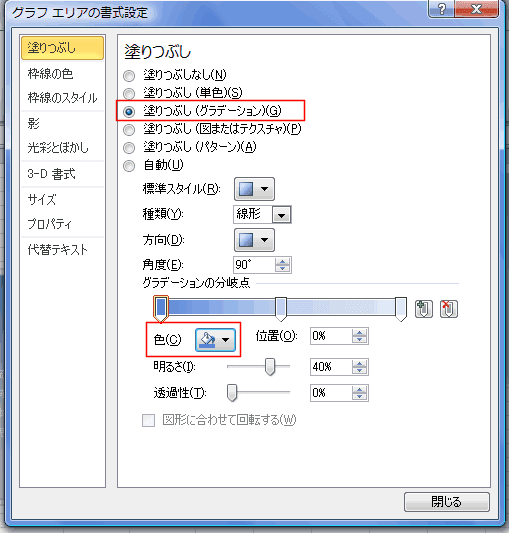 - グラフエリアをダブルクリックして、書式設定ダイアログから変更することができます。
